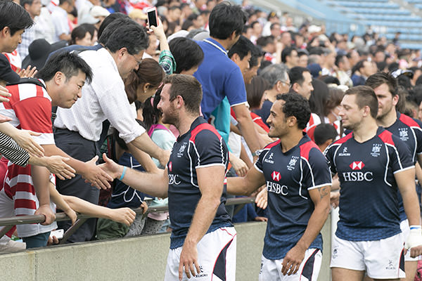 ▲試合後には敵・味方がなくなり、お互いを讃えあう「ノーサイド」。