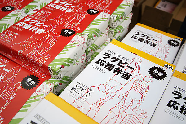 ▲ラグビー応援弁当は、149食(紅弁)と151食(白弁)。予期しない接戦でした!