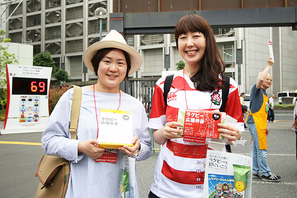 ▲女子代表の試合のために早く来たおふたり。ユニフォームが似合ってます。