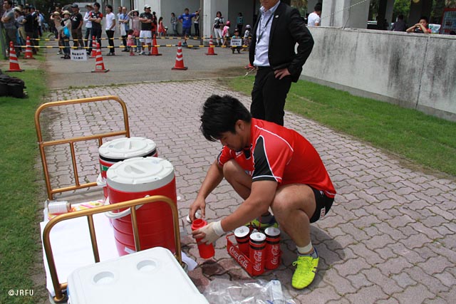 ▲選手へ水を運ぶ「ウォーター」の役割