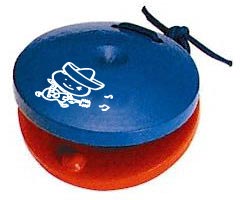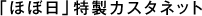 懐かしき、赤青のカスタネットに特製ロゴを添えて。