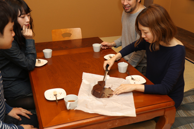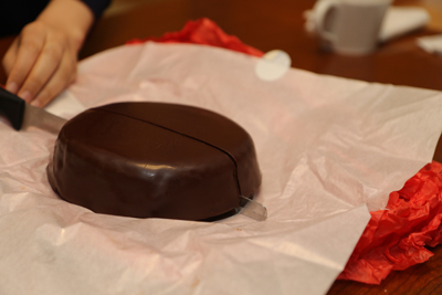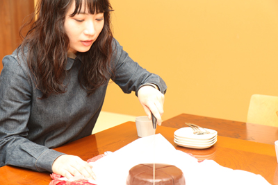 濡れたナイフをキッチンペーパーでぬぐいます。