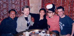 | 総武線猿紀行第175回 「スシ頭の男!サエキけんぞう、フランスに歌う!」 その11 <緊急アンケート! 滞在先サバイバルを左右する外人が喜ぶ オミヤゲとは?>の巻 それにしても、涼しい!どうなっているんでしょうかね。 海の家も大変ですね〜。 海の家好きですか?僕は好きです。 海の家で食べるラーメン、最高ですね! とうもろこしも好きです。 でも、僕は海の家でカレーは食べません。 その辺はみんなクセがあるでしょうね。 かき氷も美味しいですね。 宇治金時、でもたまにシンプルなイチゴ、 メロンなども‥‥。 そういった味覚も、太陽あってこそ。 大変だなあ、気候商売は。 リスクを考えると、多少高くついてもしょうがないのか? と思いますが、 ラーメン700円とかだったら興ざめですよね。 とはいえ海辺のコンビニとかですまさないで、 海の家、使いたいものです。 さて、ビートルズパロディ歌で数十万枚売り上げた バンド社長がいるレコード会社を訪問したパリ到着夜。 会社に行った後は、近所のアフリカ料理屋で乾杯しますが、 ここで、今回のライブで使用する スシ頭を公開いたしました。 このスシ頭は今回のツアーのために、 いろいろな小道具を作る 専門のスタイリストさんに作っていただいたもの。 マグロ寿司にノリが巻いてあるというものです。 このような寿司は実際には日本にはあまり存在しませんが、 スタイリストさんは、普通のマグロ寿司を作ってみて 「外人にはノリが巻いてないと寿司とわからないかも」 と、ノリを巻いてみたそうです。 お米はフカフカでツブツブのクッション、 マグロとのりはテカリのある生地で作られています。 これを公開すると、みんな大喜び! 特にレコード会社FGLの重鎮 オルノー(社長バンドのベーシスト)はすぐかぶり、 ![]() 「今すぐ俺にくれ!」という。 これから所属アーティストが ステージの成否を賭ける小道具なんですけど‥‥。 本当にすぐにでも持って行きかねない勢いだったので 驚きました。 在籍するみなさんに ハシとグイノミというプレゼントを渡しました。 ハシは喜びますね。これは盲点。 陶芸屋で700〜1,000円のを買いましたが、 100円ショップでも 十分に見栄えのするものが買えますからね。 しかもかさばらない。 今回もオミヤゲで悩みましたが 「札入れ」「フロシキ」「グイノミ」「茶碗」「ハシ」 といったところが浮かびましたが、 どういう人気だったでしょう? 僕の海外で配った経験上では並べたら後ろから。 1、ハシ 2、茶碗 3、グイノミ 4、フロシキ 5、札(さつ)入れ という順番でした。 アフリカ料理屋にいる人が重要人物のすべてかと思い、 必殺オミヤゲをすべて配ってしまいましたが、 実は一番左のアジア人など、 ただの社長の友達ということで、 のちのち重要な人は次々と現れるのに、 すでに銃弾をほとんど使ってしまう ということになってしまいました。 いや、オミヤゲは大事にしたいもの。 どんなにあげたくなっても思いとどまって、 半分は残しておきたいです。 そこで、これは海外でのサバイバルを露骨に左右する アンケートをしたいと思います。 外人に受ける日本のオミヤゲはナアニ? pearlnet@kt.rim.or.jp (外人に受ける日本のオミヤゲ係) までドシドシ応募ください 優秀だった方1名には今回は、 肌への刺激が少ないという、 フランス産のオリーブソープ 「サボン ド プロヴァンス」を差し上げます。 ちなみに、今回、オミヤゲ小散弾銃として、 200円の食玩「キティ」と「ポケモン」の オモチャ入りラムネを数十個買いましたが、 これは大成功でした。 でも「キティ」のほうが 「ポケモン」より受けたことが意外でしたが。 (子供にはポケモンの方が人気だが、大人にはキティ) スシ頭をかぶってレコード会社との親交を深め、 いよいよ明日はツアーに出発であります! ![]() 左から、 関係なかったタイ人、 パロディ社長、 ティエリー契約係のベトナム人カトリーヌ、 実はパリの夜のアジア系、 裏の顔役ともいわれている謎の美女、 スシ男、 ベーシストで重役、オルノー。 (この項続く) いよいよ!フランス発売された僕の初ソロ・アルバム (実は完全個人名義のソロは初めてなのです) 「スシ頭の男」が7月23日店頭発売されます! ウェブ販売はすでに開始しております! ![]() このアルバム=フランス直輸入盤に僕の解説を封入した 日本仕様盤を2,940円で一般発売しますが、 送料込みで2,900円でウェブ販売します! そして問題のオマケですが、先着30名様に、 今回アウトテイクになってしまった ニノフェレールのカバー「泉の傍の家」という曲の フランス語バージョンのCD-Rを付けます。 (=このバージョンで 今回のフランスツアーライブは始まりました。 歌唱演奏等、全く趣きの違う日本語バージョンが アルバムに入ってしまいました。 フランス語バージョンで フランスに侵攻を考えていただけに、 晴天の霹靂でした。) フランスツアーの内容を味わっていただくためにも 是非聴いていただきたいオマケCD-Rであります