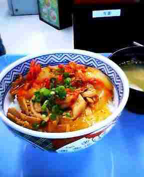 これが不満だったと第2回で漏らしていたわけですが、 あっという間に転換。 新しい豚キムチ丼は豚丼の上にキムチを載せるという シンプルなものに換わり、値段も370円に。 ま、こっちの方が全然いいですね。