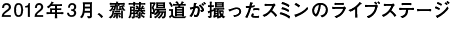 | ── | なるほど、わかりました。 ではまず、齋藤さんが スミンのライブを撮りに行ったときのこと。 |