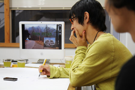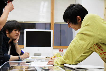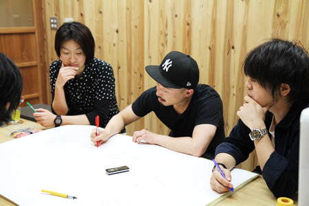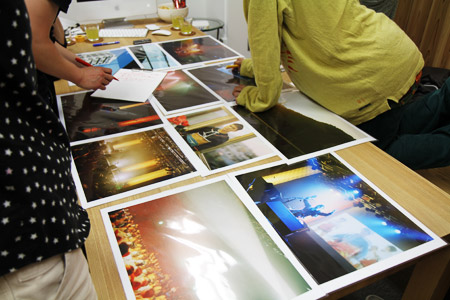 | 荒牧 | ふだんの仕事では、人の取材が多いです。 ライブの写真なんかも撮ります。 ほぼ日の奥野とは大学の同級生で 清水さんは写真の専門学校の友だちです。 |