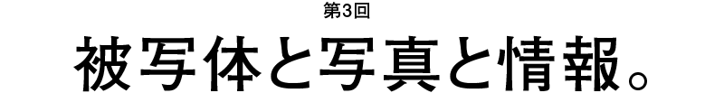 | ── | まず、とっかかりとして話してみたいのは 「写真の情報」みたいなことです。 すこし前に『ダ・ヴィンチ』という雑誌で 糸井さんが 齋藤さんの写真集について 「写真の情報量が、ちがう気がする」 というふうに、コメントしていたんですね。 そのことが、ずっと気にかかっていて。 「写真の情報って、何だろう?」って。 ぼくが、齋藤さんの写真にひかれたのも そのへんに関係がありそうだと思うんです。 |