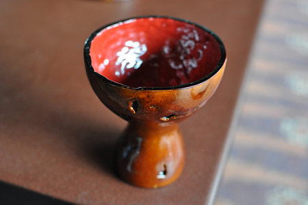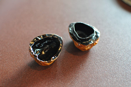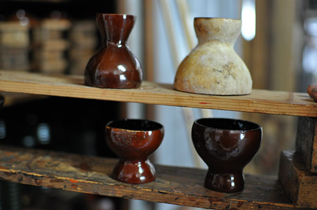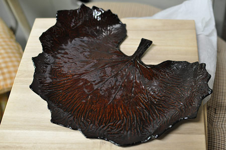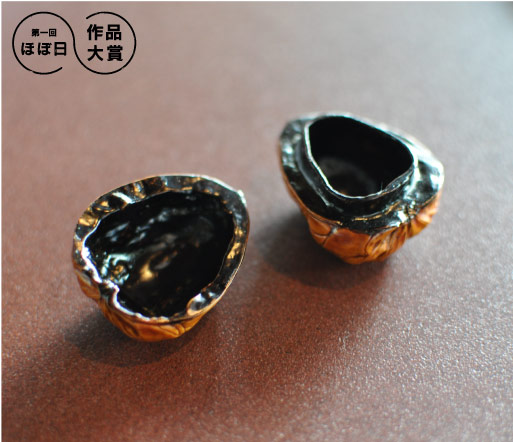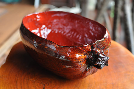 漆を塗って、器にしたもの。味わい深い形ですねー。