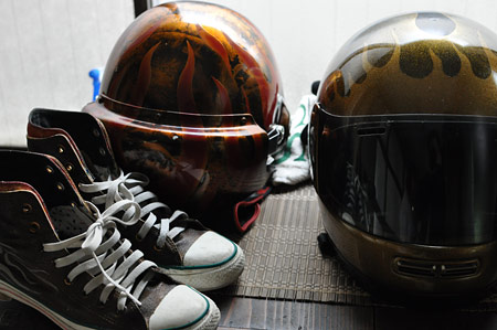 ヘルメットの仕上げはちょっと蒔絵っぽい。