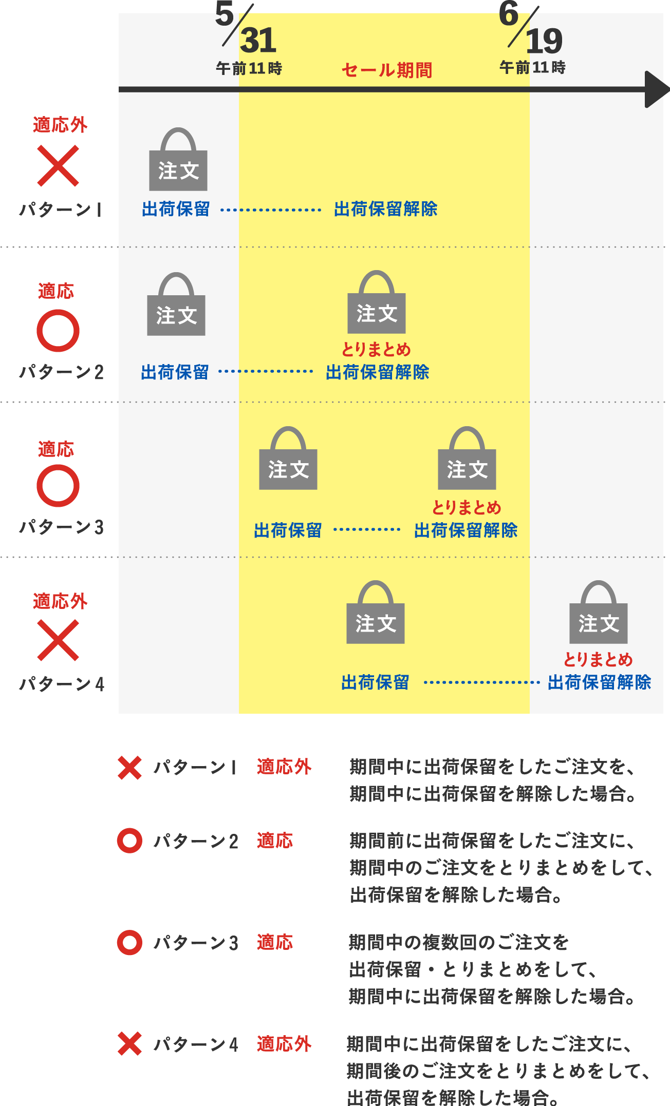 期間前のご注文の出荷保留を「解除」するだけでは、