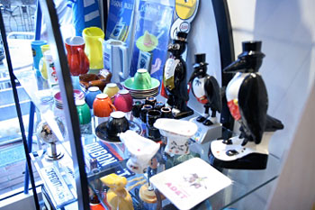 棚にはヨーロッパのかわいいアンティーク玩具が並べられ、