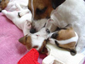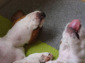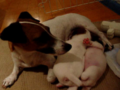 「よこどり。」 みんなかまってくれないから、 つまらないサンコ。 なにしようかなぁ。 ヨンコがゆっくりゆっくり、 オッパイを飲んでいました。 すると、そこへサンコがやってきて、 オッパイをよこどり。 「しょうがない子ねぇ」 ルーシーのため息が聞こえます。