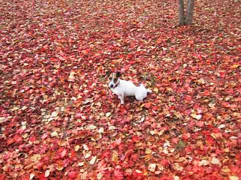 もみじのじゅうたんにたたずむルーシー。