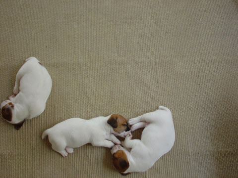 ベッドを抜けだした3びきは、いつのまにかラグの上でぐっすり。