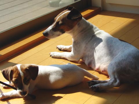 午後の陽だまりで、のんびりするルーシーとヨンコ。