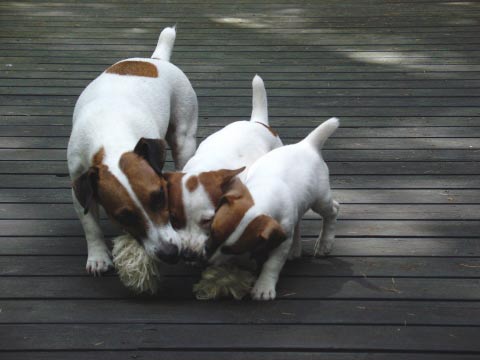 ニコとヨンコがやっとおもちゃにかみつけました。