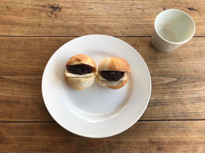 「甘味処 西山」のあんこをはさんだ「あんバタ丸」。