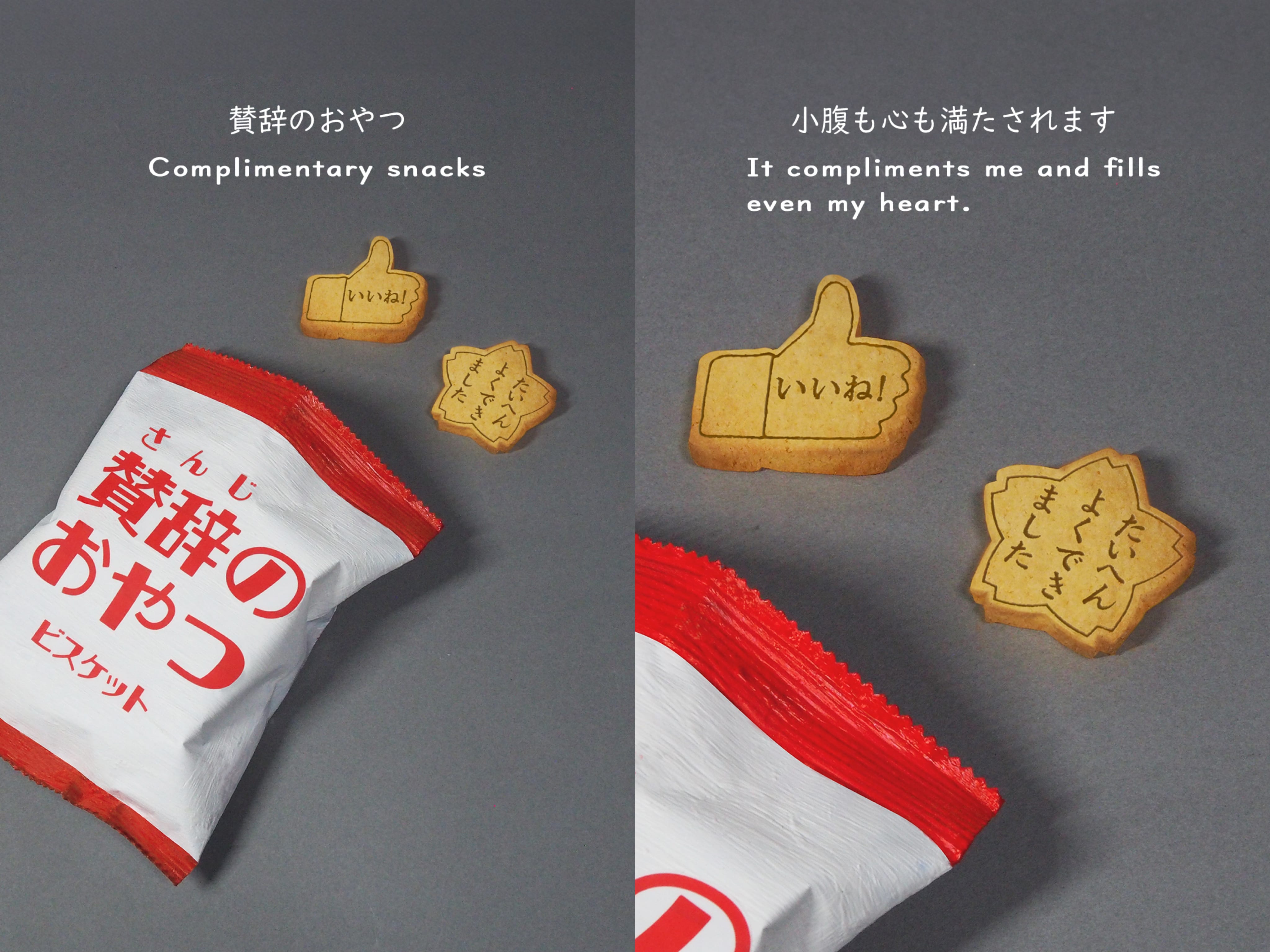 たのしみ展では「賛辞のおやつ」をクッキー缶に。