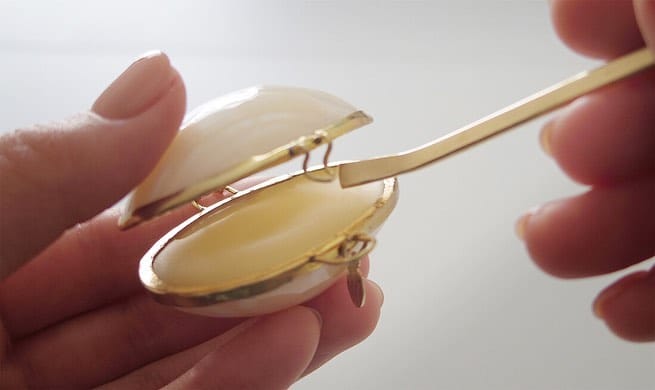 ケースに使われている貝殻の色、模様の美しさにワクワク!