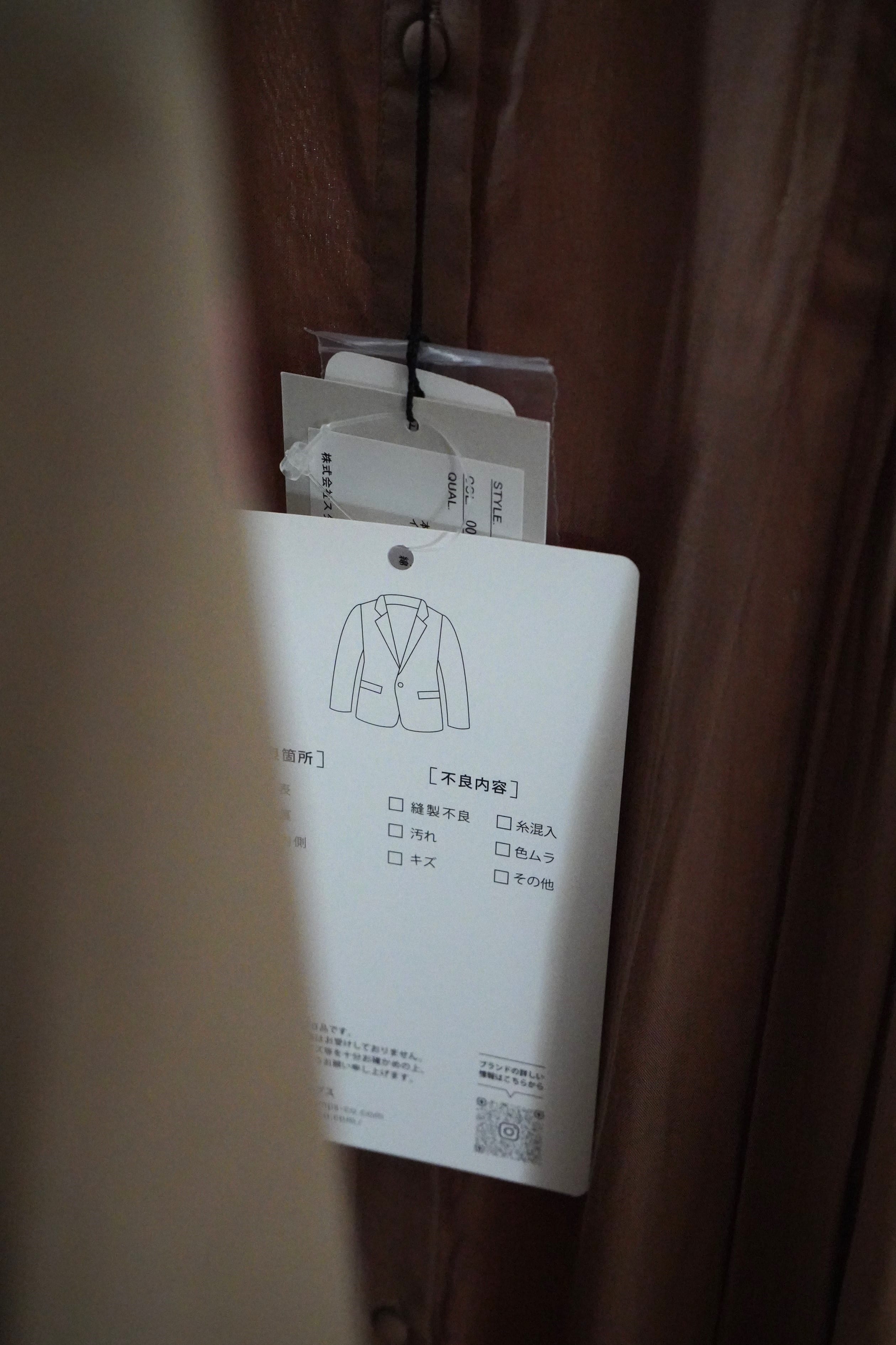 品質表示タグなどは商品へ縫い付けておらず