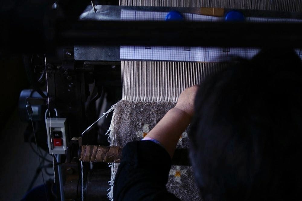 羊毛の自然な色を活かしたモダンな印象のデザイン、