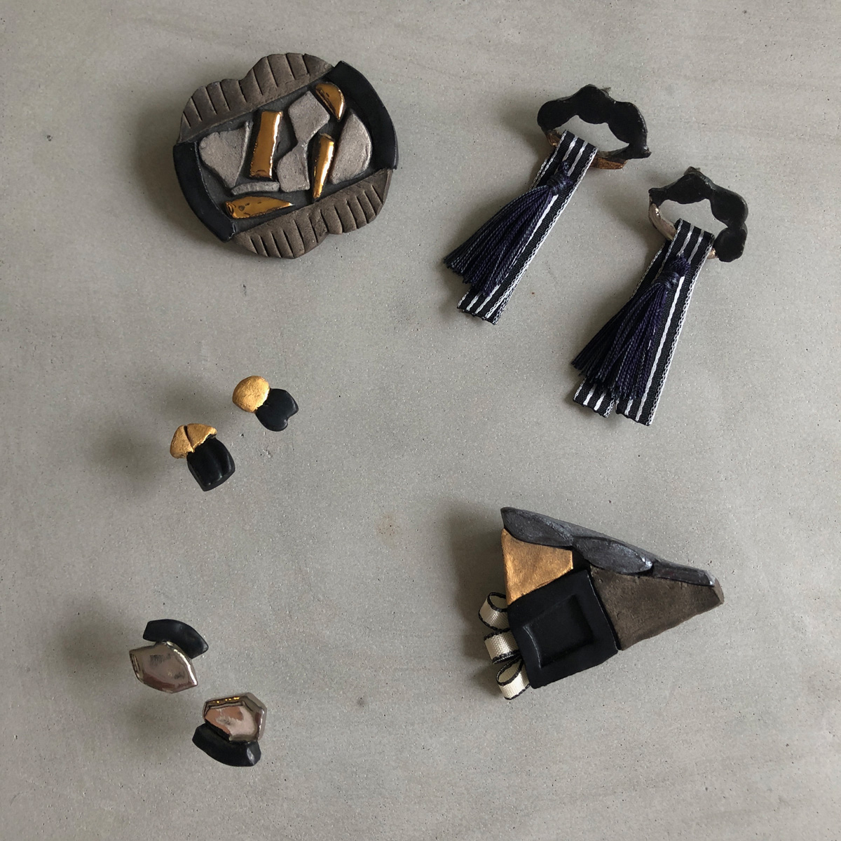 2人で小さな陶土のカケラを思いつくままにつくり、