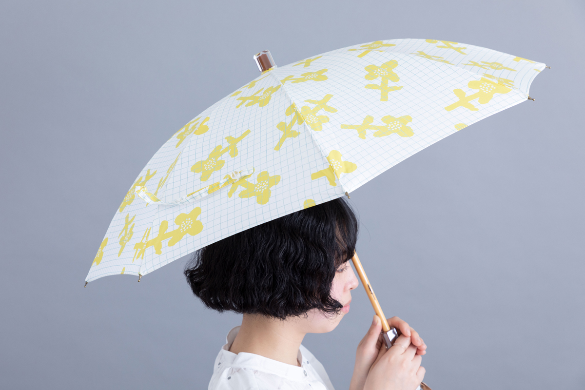 傘の生地は風に揺れる花々をイメージしたデザインで、