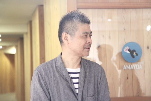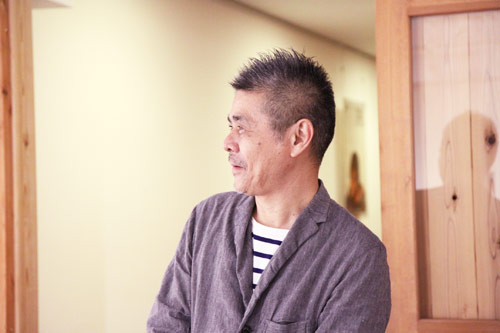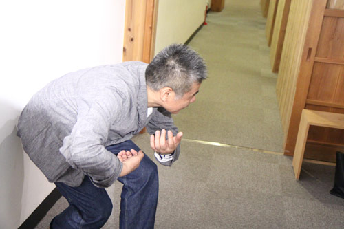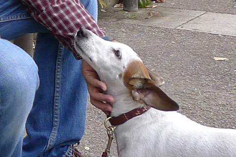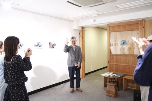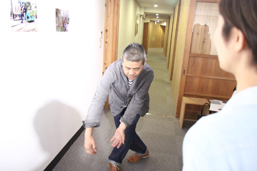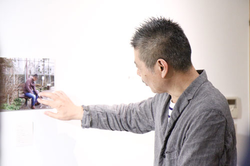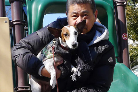 かわいい犬を愛でる やさしいおじさん、です。 でも、これはお芝居です。 犬とおとうさんは劇団をつくりました。 「セルフタイマー」 というものを使うことで、 お芝居ができるようになりました。 <『ブイヨン豆知識(未刊)』より>