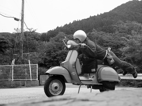 「森の中をカブで颯爽と走るわたくし」 と題して 撮りました。 タイマーをセットし バイクのところまでダッシュで行き エンジンをかけ走り出すので忙しかったです。 劇団セルフタイマーの経験は5年以上ありますが 苦労は人に見られると恥ずかしい所です。 「昨日あそこでなにやってたの?」 って言われた時の恥ずかしさったらもう‥‥。 (サカイ)