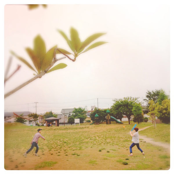 カメラはiPhone4Sです。 アプリのタイマー機能を使いました。 公園の中の植木に置いて、10秒前にセットし、 ダッシュでバッターボックスで構えました。 うまく「投げているところ」「構えているところ」 「オレンジのボール」が入った写真が撮れて よかったです。 少し入った「植木の葉っぱ」も、 セルフタイマーっぽくてお気に入りです。 意外にも、失敗は1枚だけで (投げている夫しか映らなかった) 2枚目で今作が撮れました。 普段から一眼のセルフタイマーで撮ってるから、 セルフタイマーに慣れてるのかもしれません。 (atsumikan)