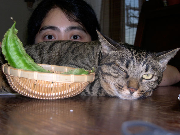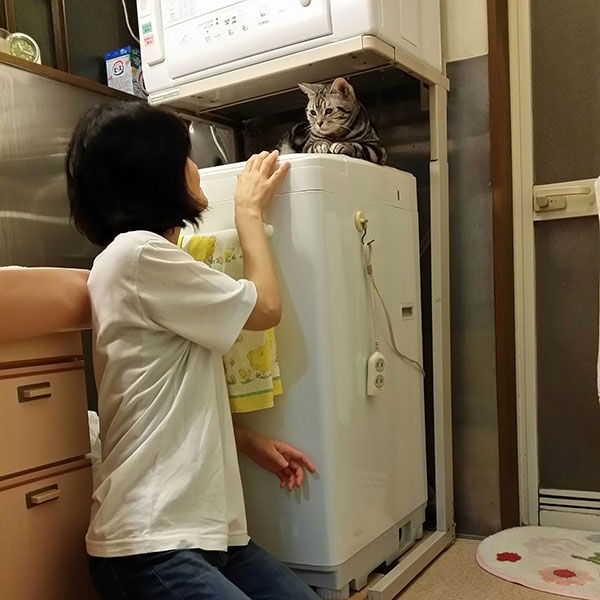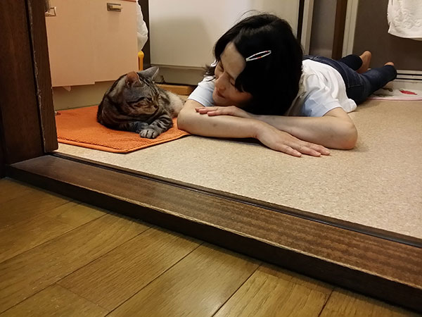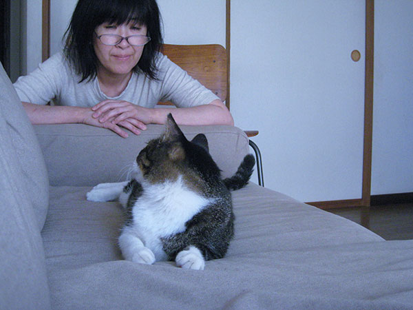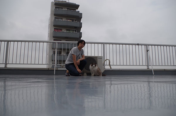 野良猫「コドモ」との共演です。