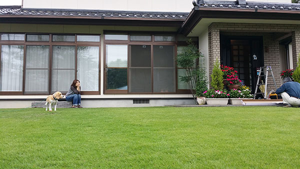 偶然玄関の網戸の修理をしていた父を