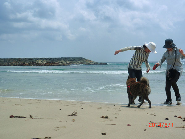犬が磯の匂いに興奮して動き回ったので、
