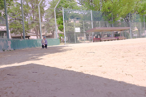 女優と走ってバッグのところまで行って