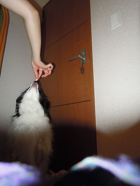 オヤツ欲しさに伸びきった顎、