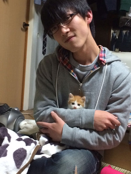 飼い猫と僕のツーショットです。