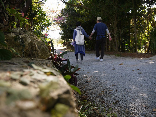 イナスイオンのあふれる明るい涼しい森の小道を、