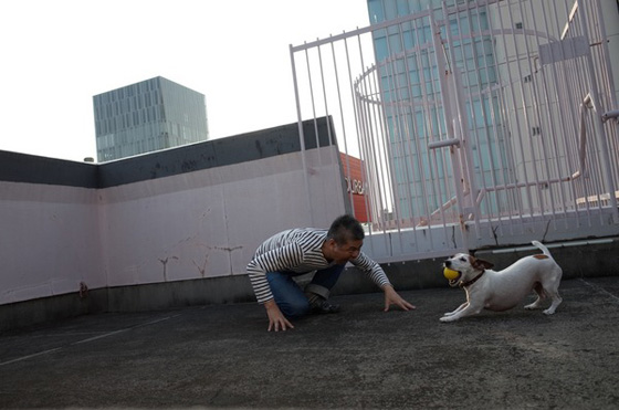 「劇団セルフタイマー」の 夕暮れ公演から、迫力の場面です。 女優が仕掛けたものですが、 監督も負けてはいません。 一瞬たじろいだところに、 ぐっと攻め込みます。