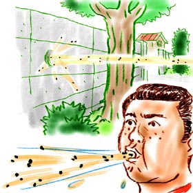 スイカの種をとばし続けて十数年。