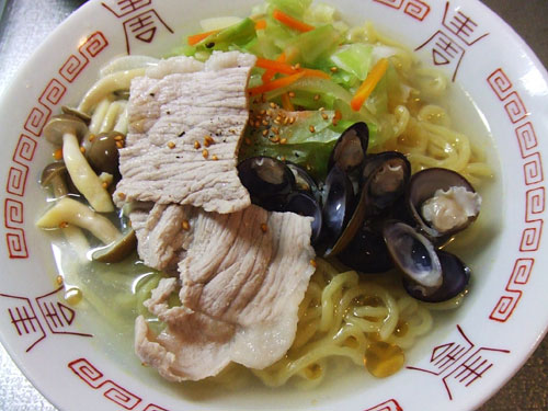 昆布を入れてしじみを煮て、貝をとりだしておく。