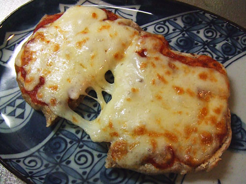 焼きあがった生地にケチャップを塗りチーズをのせ、