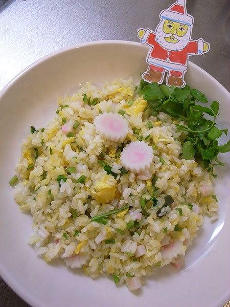 すばやくサンタの絵を描いて切り抜き、飾りとした。