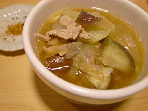 そこに豚肉をぶっこみ、夏の豚汁といたしましょう。