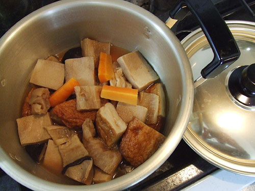 帰省した折りに産直で買った凍み大根をメインに煮た。