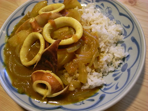 カレートマト味を軽くまとったイカに
