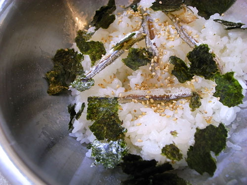 ゴマと海苔をかけ、熱々を鍋から食べた。