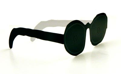 | みうら | 昔よくあったタイプの紙の眼鏡は、 表面がセロファンのようになっていて 見えないものが見えたりするんだけど、 これは、見えるものも見えなくするという、 新しい方式ですね。 |