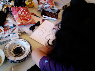 | ほぼ日 | これを、本のページに挟んで、 みなさんにしおりにしてもらえればと思います。 本のページに、サングラスのつるが プラーンプラーン、ぶらさがるかんじで。 |