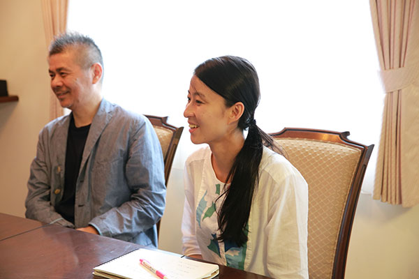 | ─── | はい。 そして三國さんデザインの商品を扱う 「気仙沼ニッティング」の 御手洗瑞子さんも、いっしょに。 |
