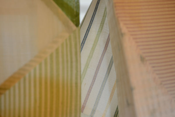 | 糸井 | 実物の着物と、 その実物の、貴重で愛おしいかけらである、 小裂(こぎれ)たちの展示ですね。 シンプルな構成です。 そこに、随筆家である志村さんの本も置きたい。 つまり志村さんの世界へと、 「着物から」の窓も開いているし、 「小裂から」の窓も開いていて、 さらに「書物から」の窓も用意されている。 そんな、展覧会にしたいです。 どこからでも入っていただいて、 感じたり、思ったり、考えたり‥‥ 何層かのたのしみを、 ぼくらといっしょに味わいましょう。 (随筆家としての志村ふくみさんのお話に つづきます) |